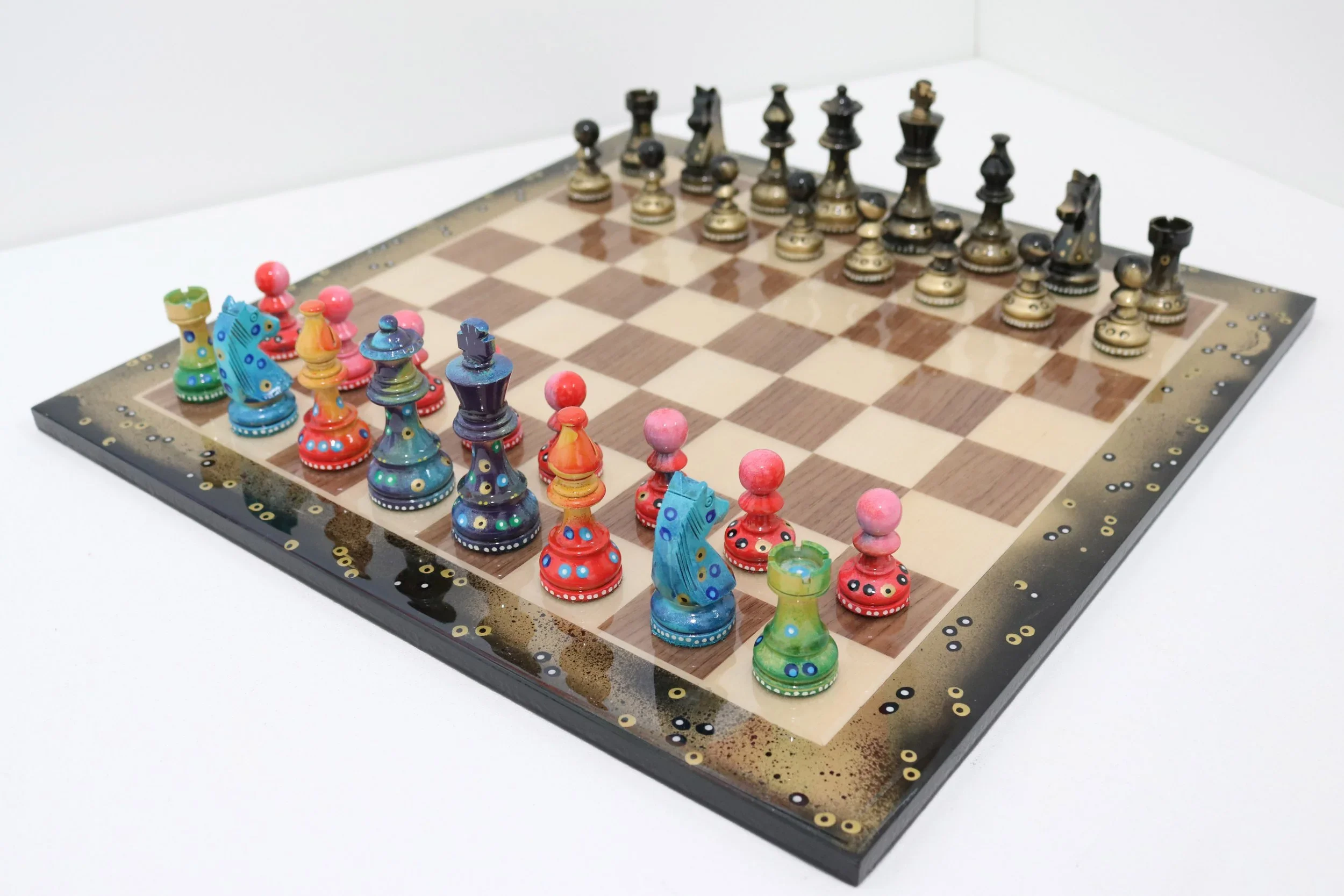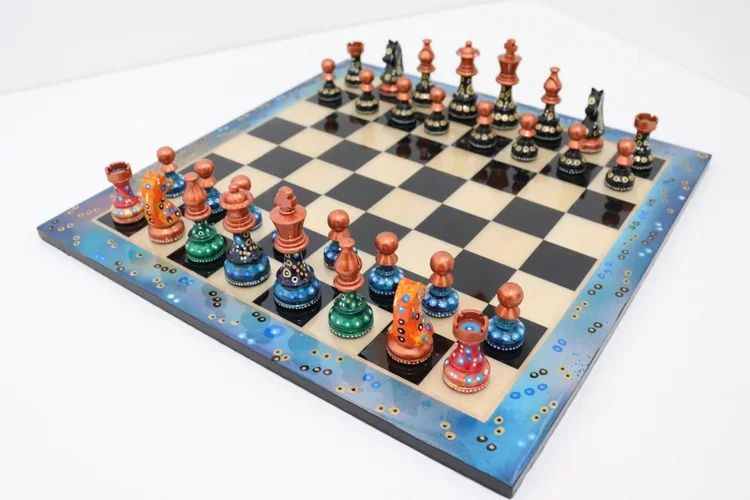 Sydney Gruber Painted Club Chess Set Combo #2 In Multicolor Vs Black